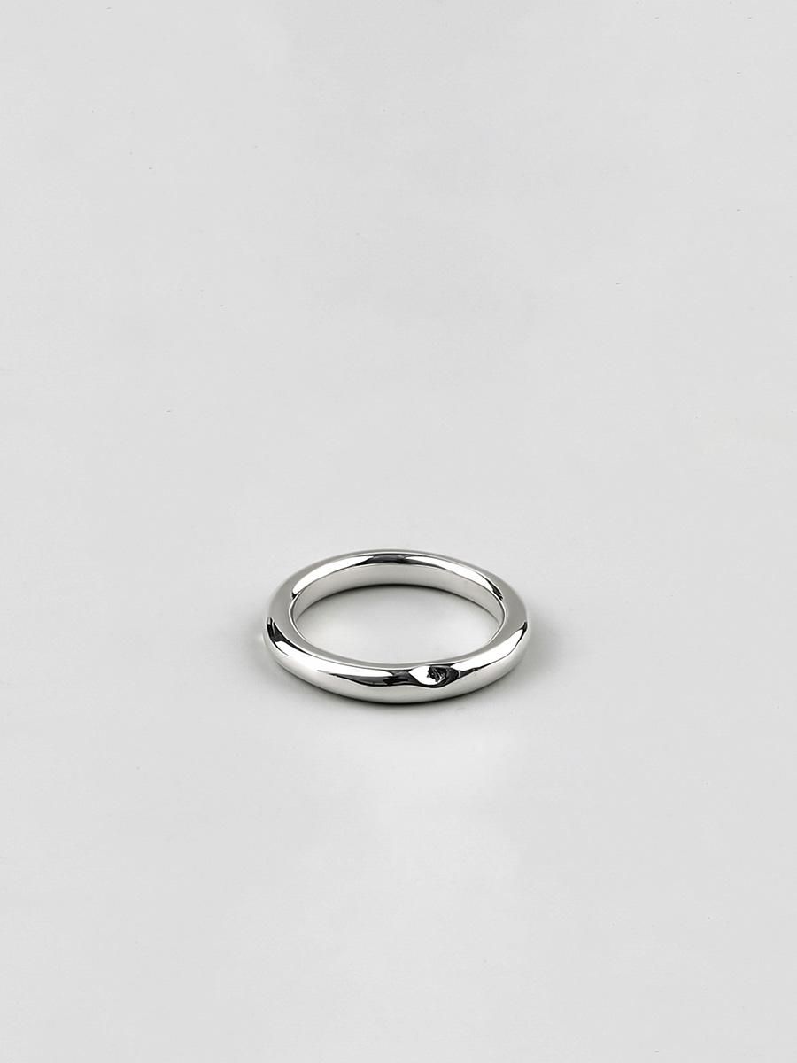 へこみがないフラットな部分もあるため、着ける向きによって微妙な違いがあるリングです。