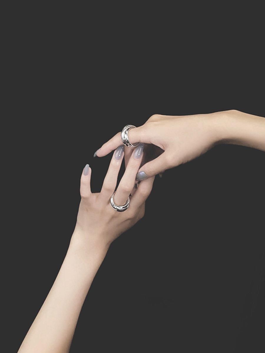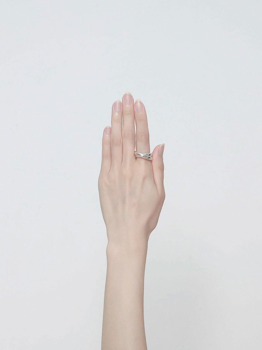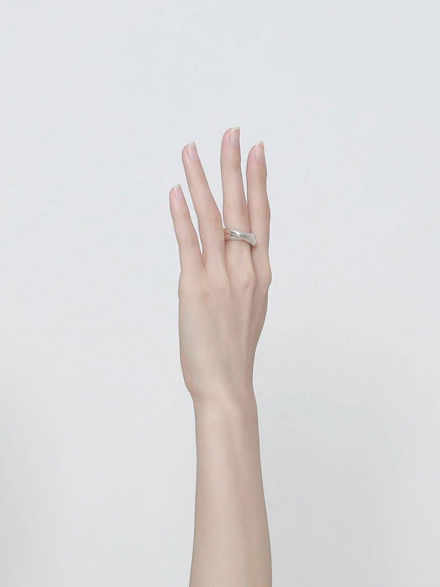 リングがリングを包み込むようにデザインされたリングは、機械的ではなく幅や太さが箇所によって変動します。