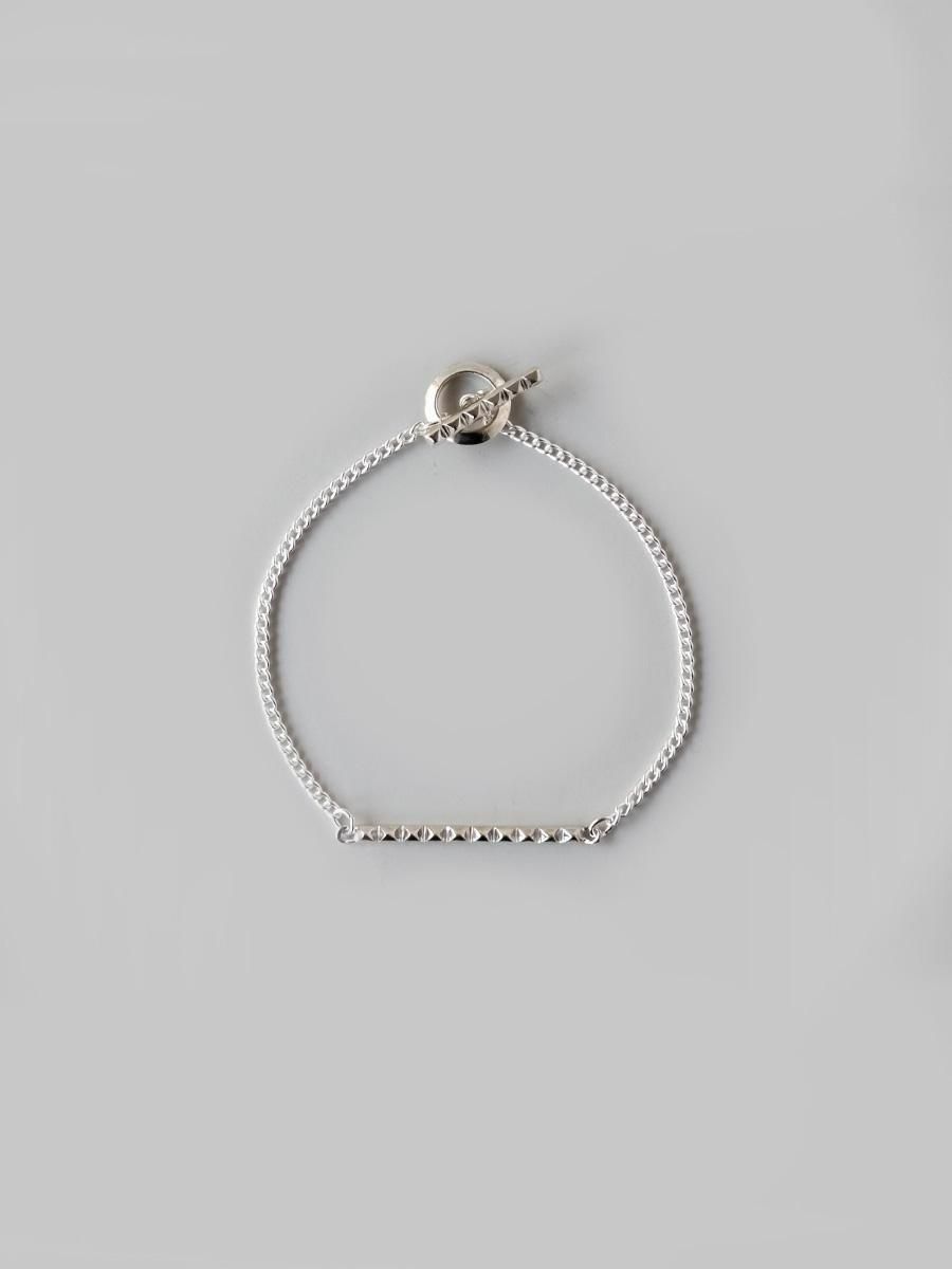 細めのスタッズバーをそれぞれフロントに位置するようにデザインされたチェーンブレスレットです。