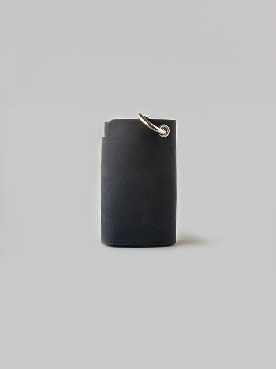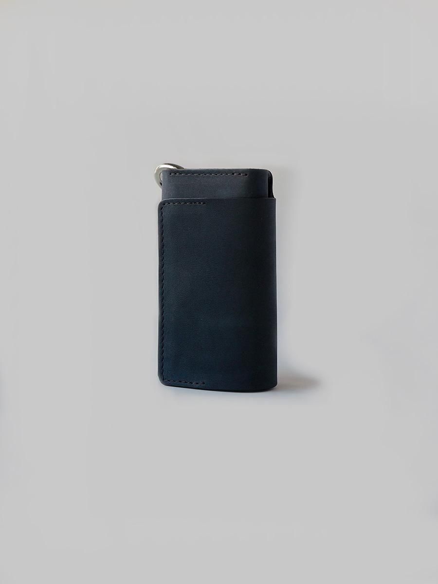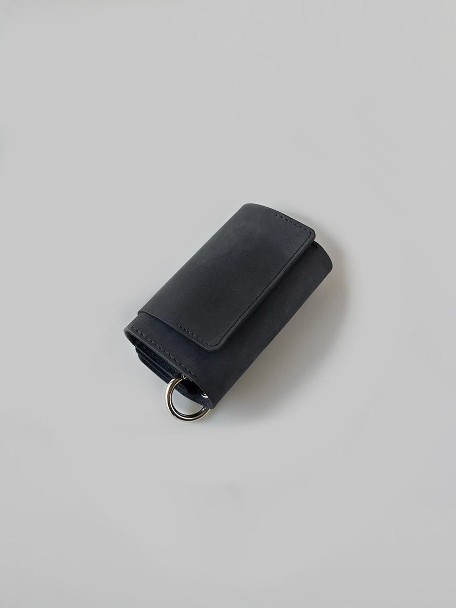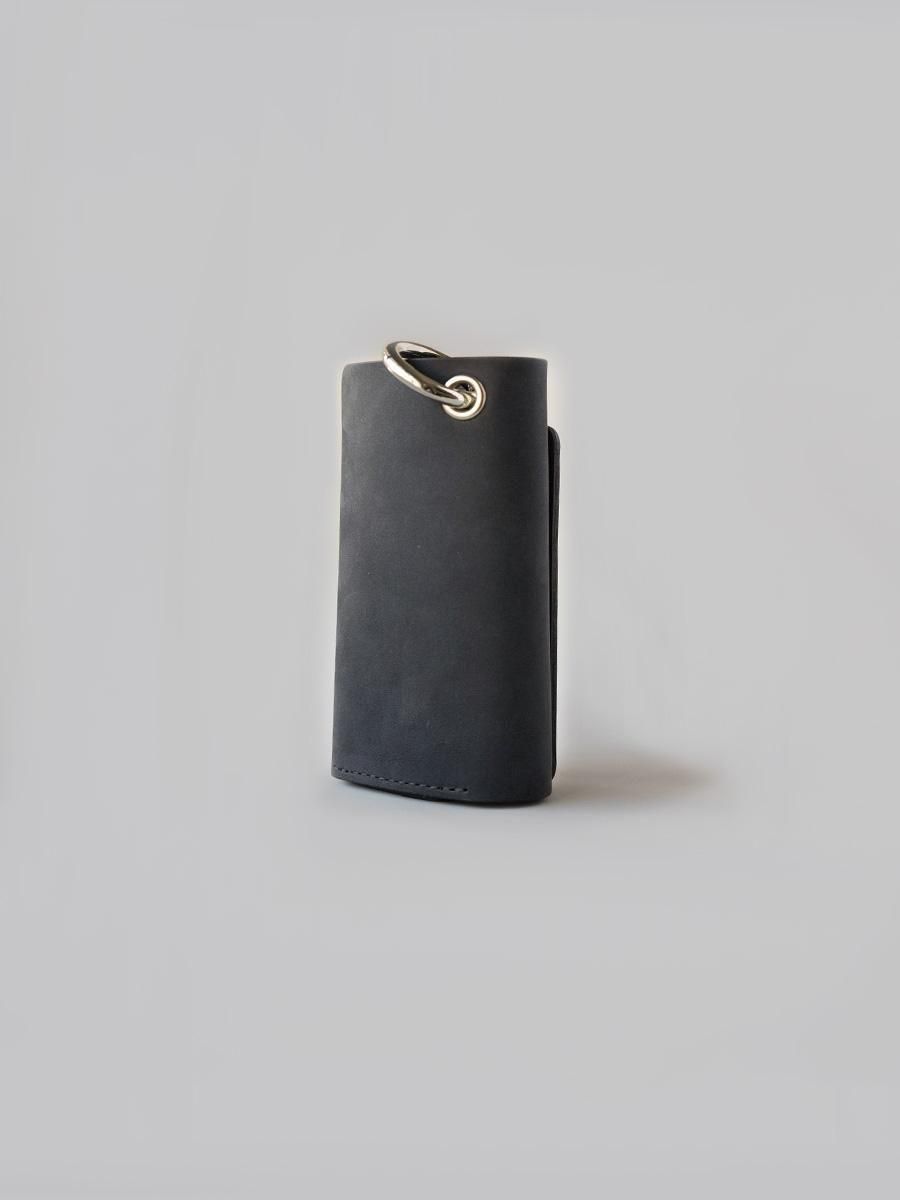 硬貨とカード、紙幣がコンパクトに収まる構造の三つ折り財布です。パズルのように組み合う型紙からできた設計は素材を無駄にしません。背面のカラビナは脱着可能です。