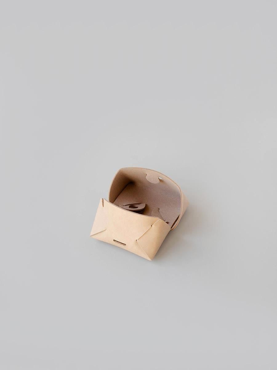 開いた状態でも自立するので、中に入れたものを取り出すのもスムーズ。開いたままデスクに置けばトレイのようにもお使いいただけます。